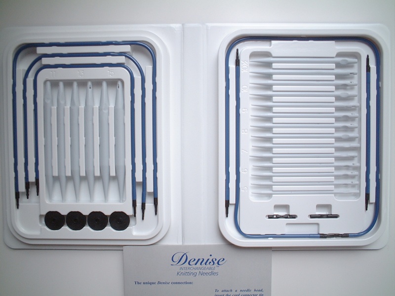 Super Duper Yeah! I finally got the call yesterday that my Denise Interchangeable Knitting Needle Kit has finally arrived at my local yarn store! I ordered this lovely almost a month ago! For those not in the know, in this amazing little kit (about the size of a hardcover book) you get 10 needle tips from sizes US5 to 15, 6 lengths of cord from 5 to 19” inches, 4 end buttons and 2 connectors. This allows me to create any size/length circular needle I need! You join various lengths of cord to get just the length you want; leave your work on any cord, twist off the knitting tips and twist on the end buttons and your work is safely held until you need it! I can’t wait to start a project on these. Now I just need to go to Ravelry and find a pattern, then it is off to the yarn store. Too bad, I can’t actually use them right away, with my bum thumb and all.