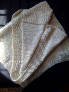 I am sure you all have been wondering if I have given up my knitting in favor of sewing lately. Not to worry, I’ve just been working on the same project for a while. Remember my dear friend Kaci? She is pregnant and due in November. She found out a couple of month’s ago that they are having a little boy and they’ve decided on the name Elias. Isn’t that sweet? The minute I found out that Kaci was pregnant, I decided to knit her a baby blanket. I used the pattern Big Bad Baby Blanket from StitchNBitch. I picked out some cozy cream colored yarn and got started. It was a fairly easy pattern, yet it had enough detail to hold my interest. Good thing, because it too a while to complete. I got it done just in the nick of time – the baby shower is Sunday! I am pretty happy with how it turned out, I just hope that Elias likes it!