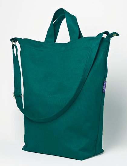 I know that I am already over capacity in the bag department, but check out the new duck bag by Baggu! I think it would make a great book bag, a market carry-all, the perfect everyday tote. I love how you can carry in your hand, on your shoulder or across your chest. It made of 100% recycled cotton canvas and only costs $18! Mama wants!