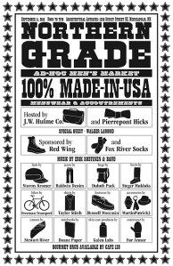 It’s a shopping event designed to celebrate American- made menswear from small companies, most of them from right here in the Midwest. The line up can be directly taken from Shawn’s closet: Red Wing Shoes, Duluth Pack, Pierrepont Hicks, Taylor Stitch, J.W.Hulme, and Baldwin Denim. Basically, Noble County Gold heaven.