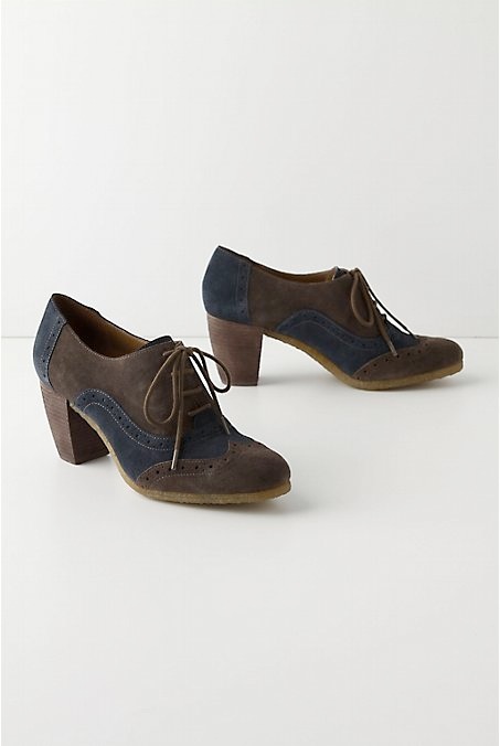 I really love a good spectator, but sometimes they can get a little “manly” for my tastes. I feel like there is a fine line between menswear-inspired and looking like I’m wearing a pair of Shawn’s Aldens. I found these today on Anthropologie and I think that they’re just the thing. Great menswear style while still feminine. The stacked heel and creped sole are spot on. The chocolate and navy suede color combination is just perfect for fall. I could see myself wearing them with jeans or dressing them up with some tights and skirt. Here’s the best part: they’re on sale!