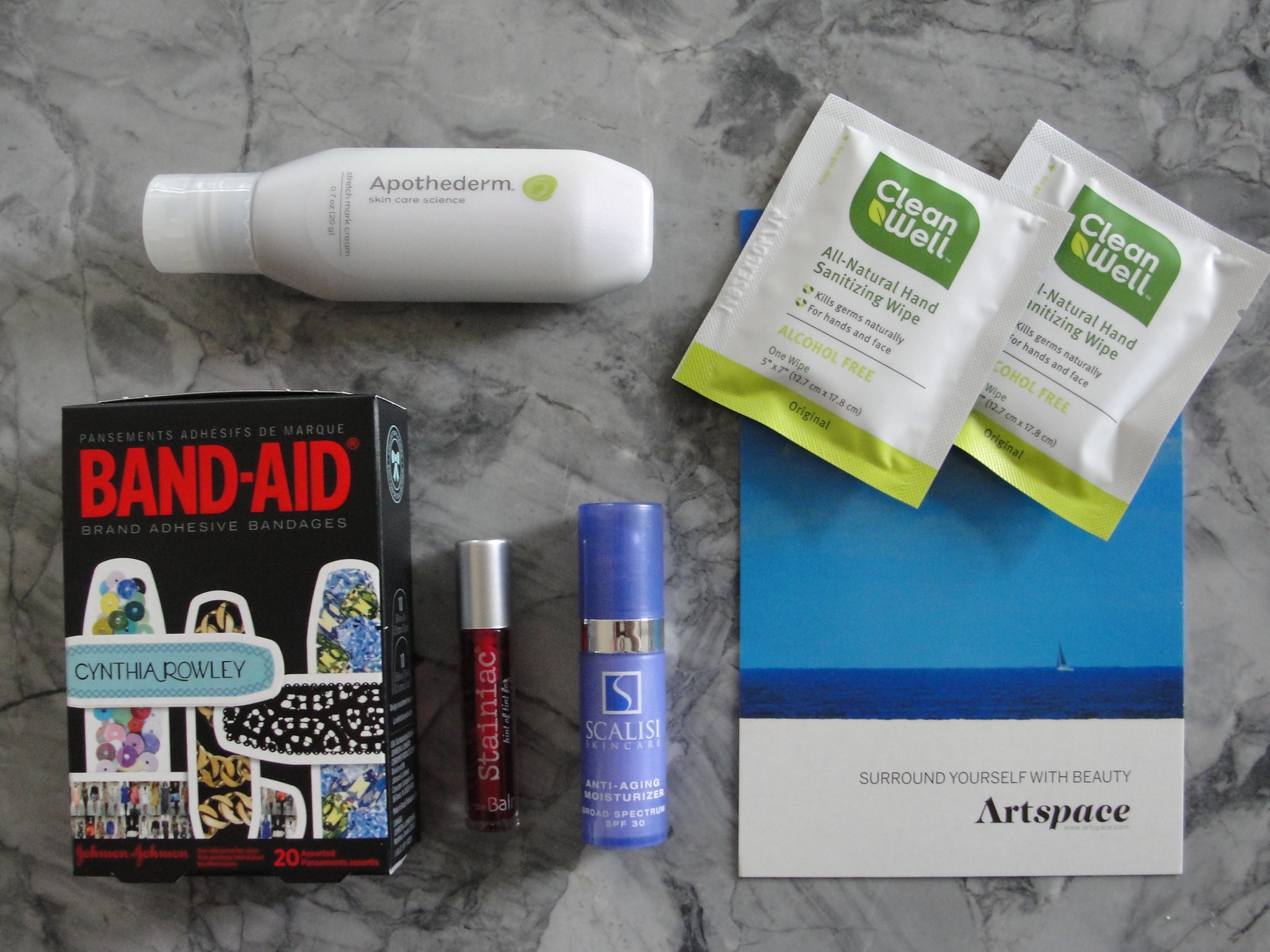 - BAND-AID® Brand Adhesive Bandages by Cynthia Rowley Bundle Too cute bandages with different “fashion” prints. This was our lifestyle freebie this month. I’m not sure that I want to draw any more attention to my klutzy collection of scratches and scrapes, but they are pretty adorable. I think if you had a little girl, she’d love them.