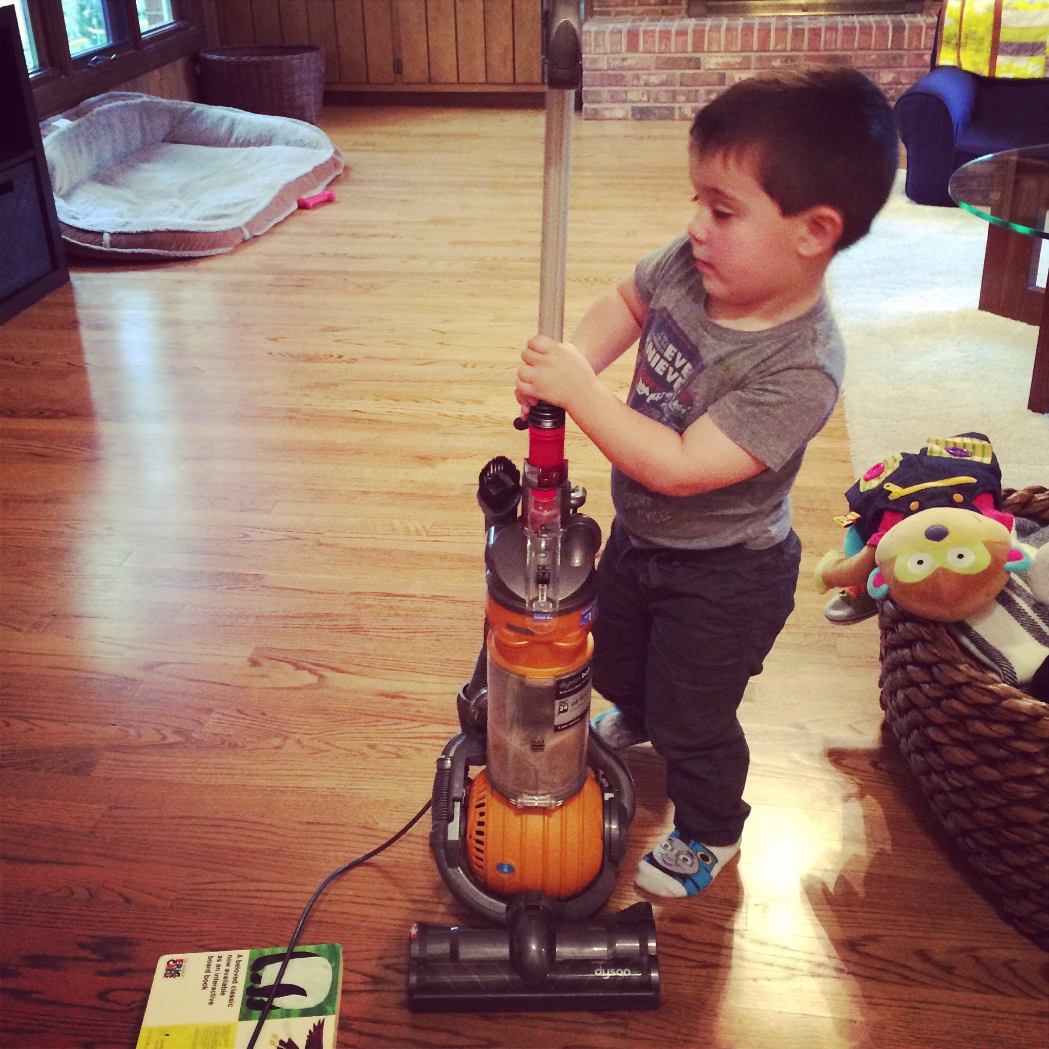 Now that the weather has been making it hard to get outside Mom has been making sure we do lots of fun things around the house. We bake cookies, paint and color with crayons, play with play dough, and play with the vacuum. Gosh, I do love that machine.