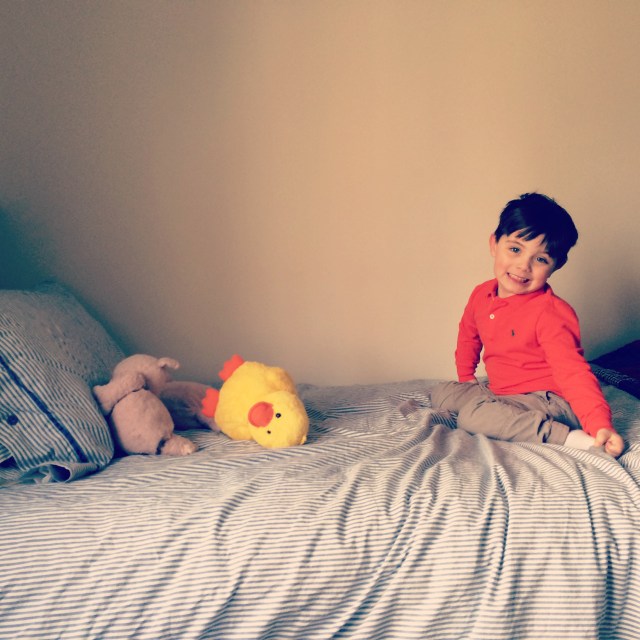 I really love being three! It’s only been for a little while, but I get to do so a lot of “big boy” things now. I got my own “big boy” bed and I am so proud of it. I have to show everyone when they come over to visit and one of my favorite things to do is sit on my bed and read books with Mommy and Daddy.