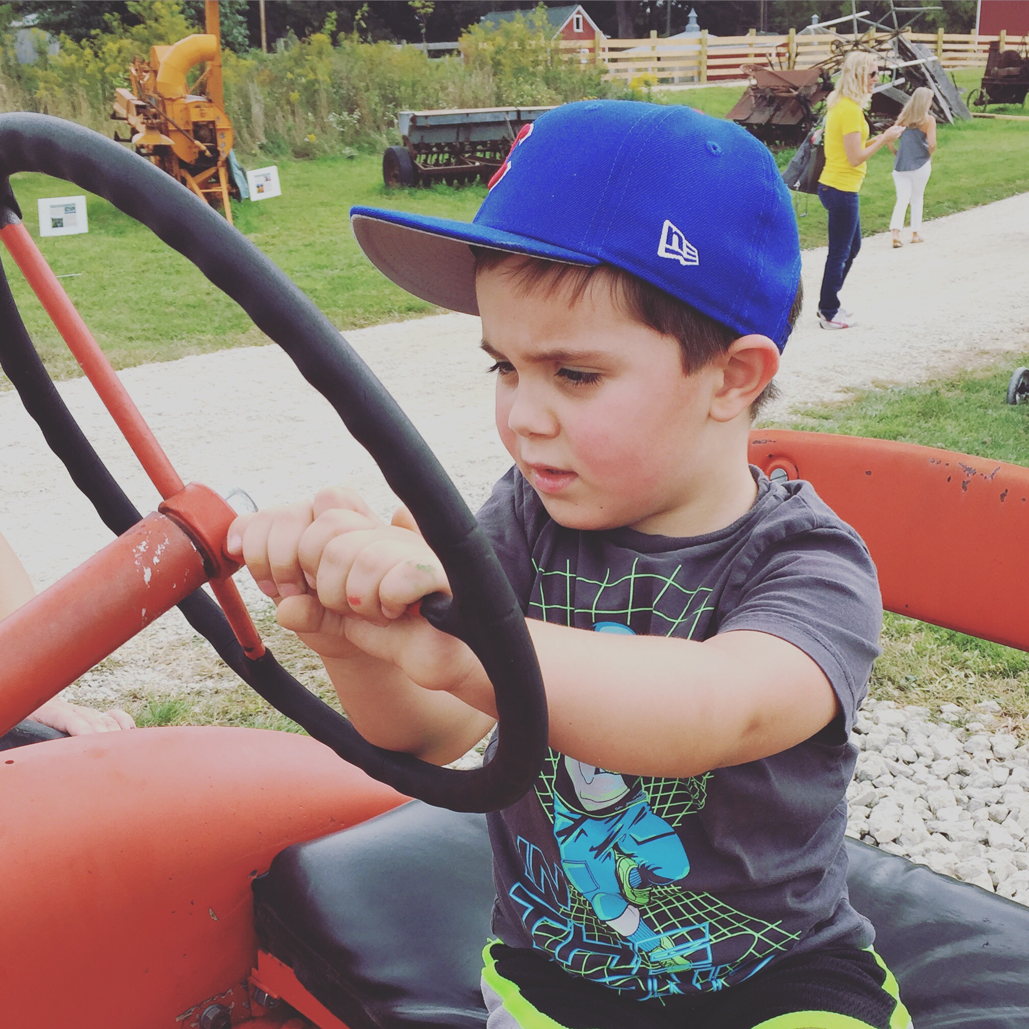We went to visit a farm and got to pet all the animals, dig in the garden, go on a hay ride, and check out some cool old tractors. I also got to climb inside a fire truck!