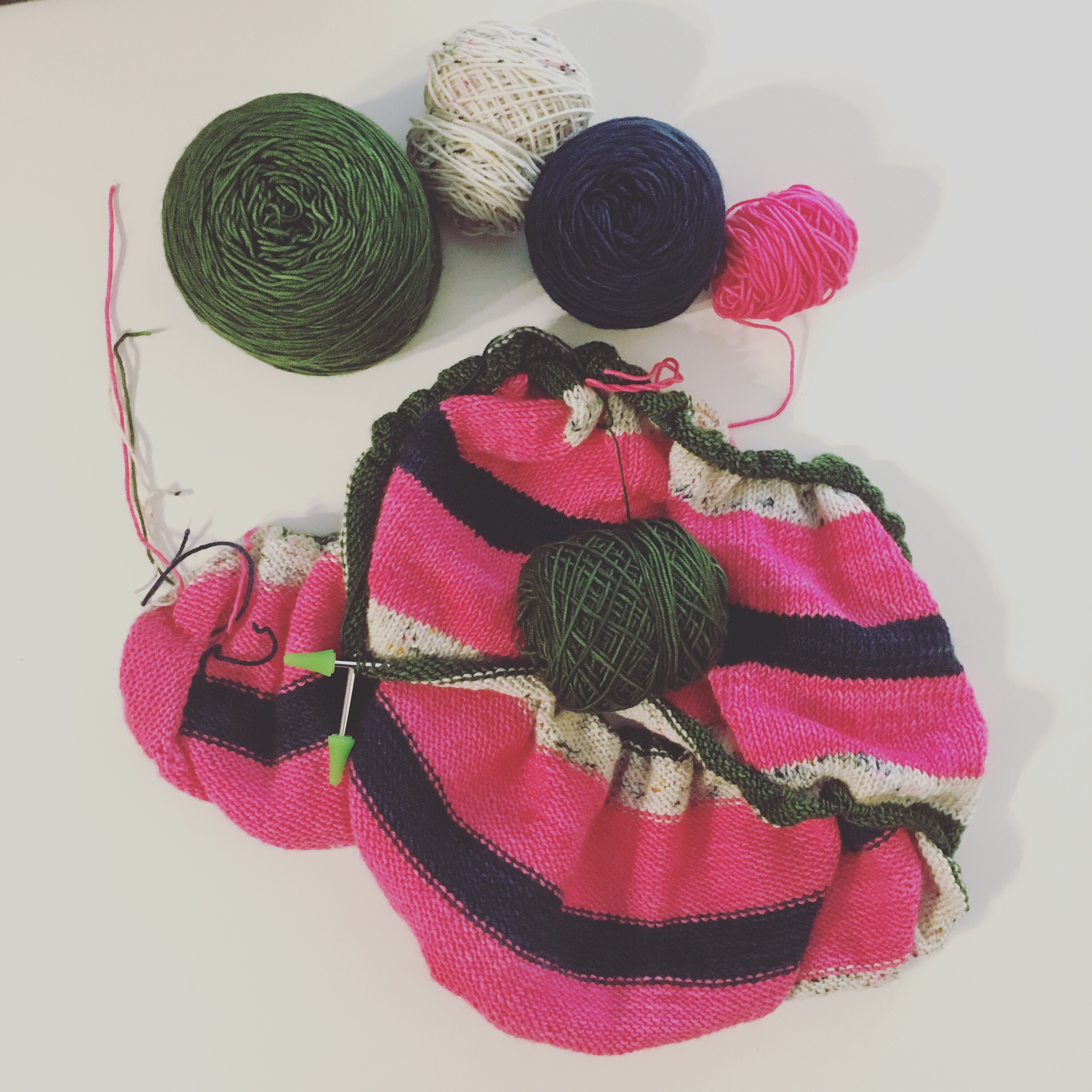 Most of my projects right now are longer term, I wanted to do a bit of a progress report to keep myself accountable and on track for finishing by the end of summer. Here’s the breakdown of the four I have on my needles: