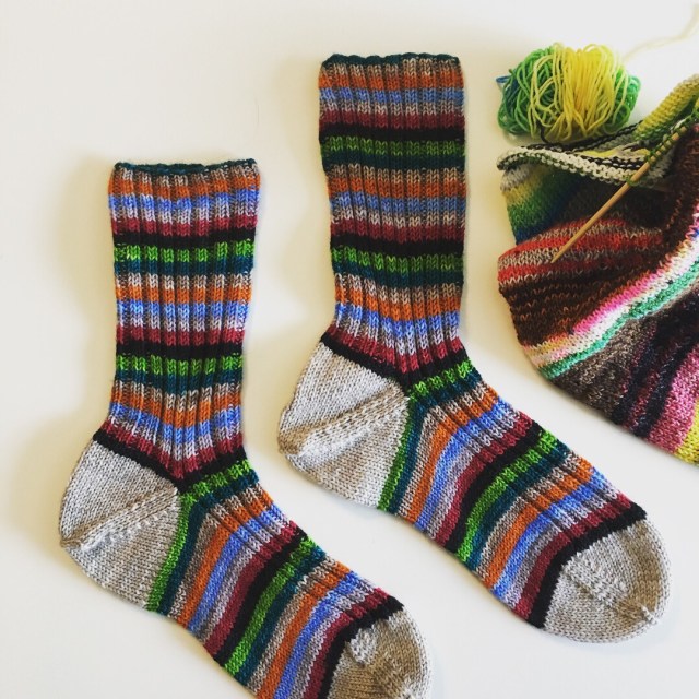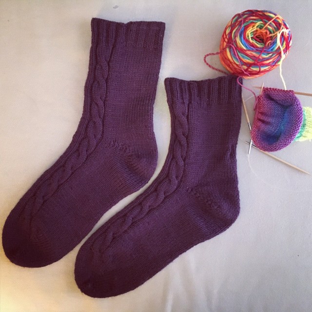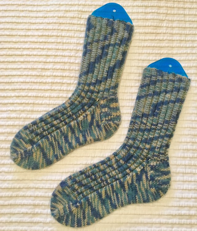 I finished these mid-February, but it took time for me to block and photograph them. I’m already on my second sock for March. I don’t want to jinx myself, but I might be able to bang out two pairs for that month. Or I might try to take on something new, we’ll see.