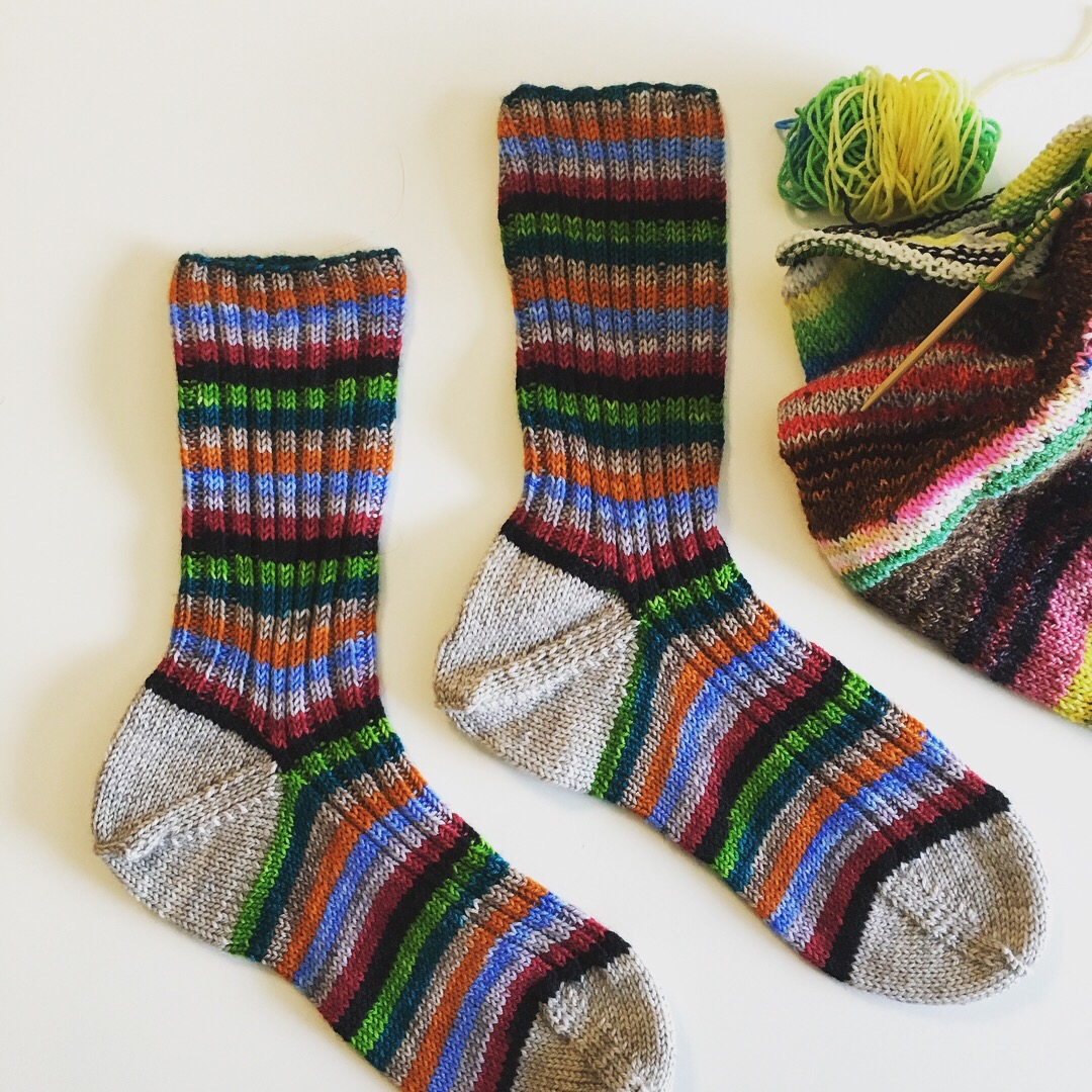 April’s edition of #operationsockdrawer is complete. I decided to use The tried-and-true Silver’s Sock Class pattern, since I would be working on these while traveling and I have it memorized. I also wanted something rather simple to showcase this gorgeous yarn. I picked it up at Michigan Fibre Studio when they were having a trunk show for The Lemonade Shop, a Colorado-based Indy yarn dyer. I love her fun use of color and great names for her yarns. This colorway is Alternative Facts. Complete details can be for be on Ravelry