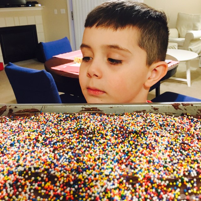 Our family has a long-standing tradition of making a “LOVE” cake. They can be made any time throughout the year, but usually consist of yellow cake and chocolate frosting (sprinkles are optional) and are typically made for Dad. I made countless LOVE cakes growing up and it is one of my favorite traditions to carry on with Joe.